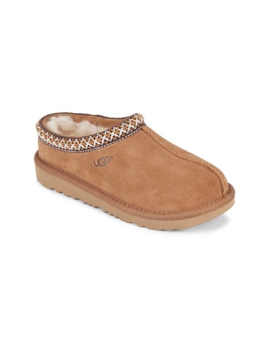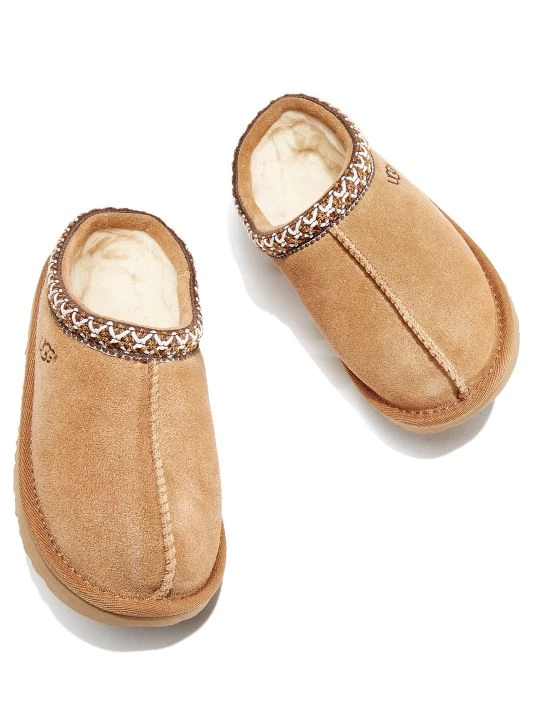 Braided suede slippers with a non-slip sole.