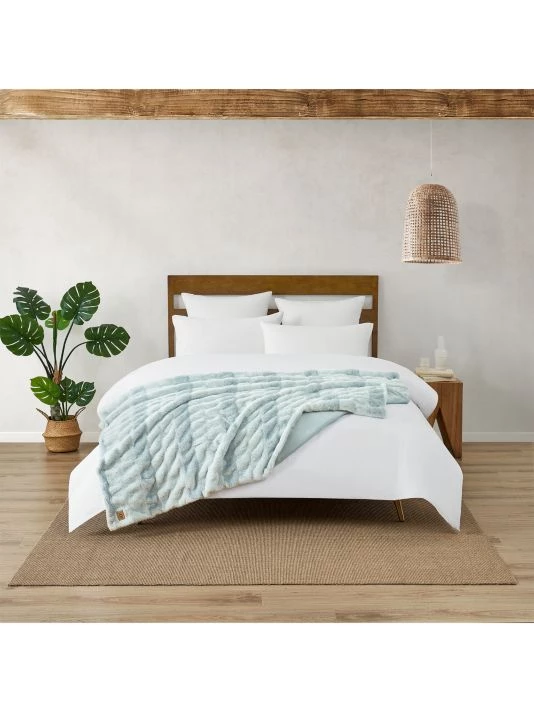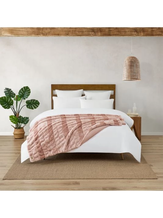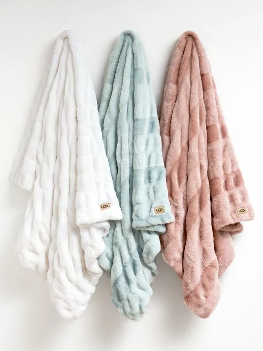 Showcasing UGG®’s signature soft and cozy feel, this two-tone ruched faux-fur throw is sure to elevate any space.