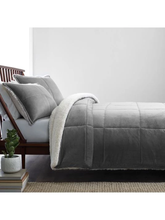 From the Blissful Collection. A comfy twist on the comforter & sham set, blissful features a beautifully box quilted 100% plush polyester-sherpa microfleece that’s reversible for double the stylish combinations. Polyester. Machine wash. Imported.