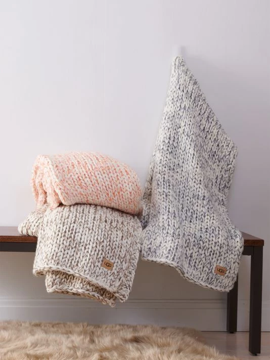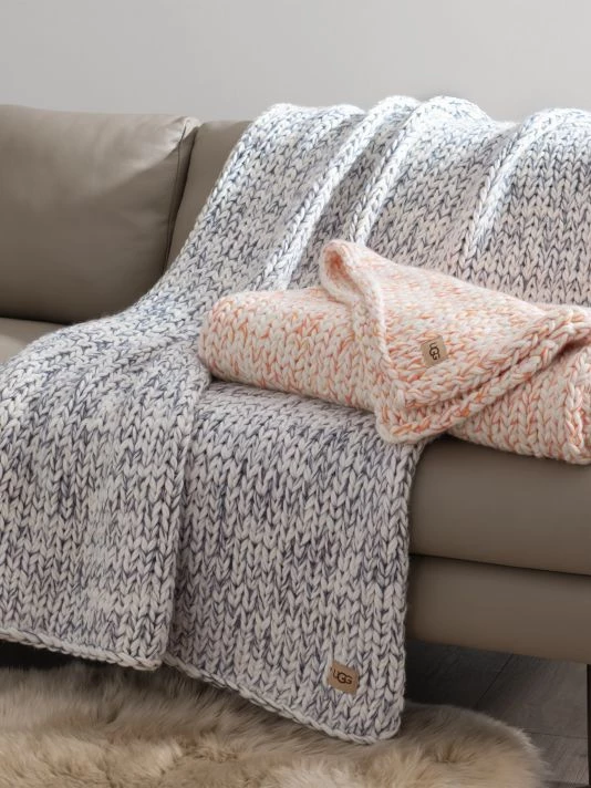 From The Eloise Collection. The two-tone knitted Eloise blanket is a cozy living room essential.