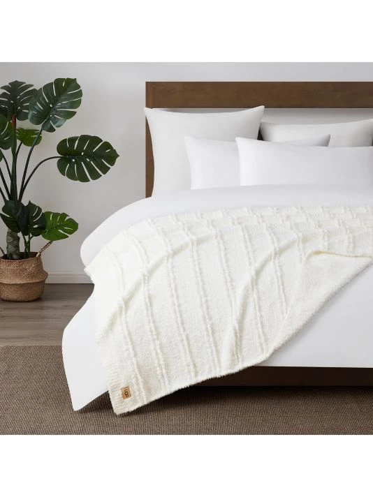 Relax in the softness of UGG® with the Eugenia throw. This textured knit blanket with its striped fringes adds leisurely dimension to any favorite space.