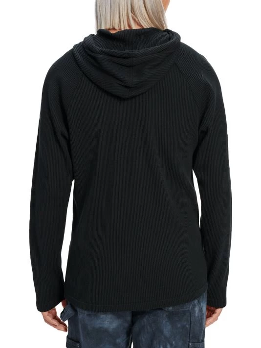 The Huck Hoodie is a staple pullover made from a soft cotton-blend waffle knit. Perfect for sleepwear but also an ideal layering piece, it adds lightweight warmth to any occasion.