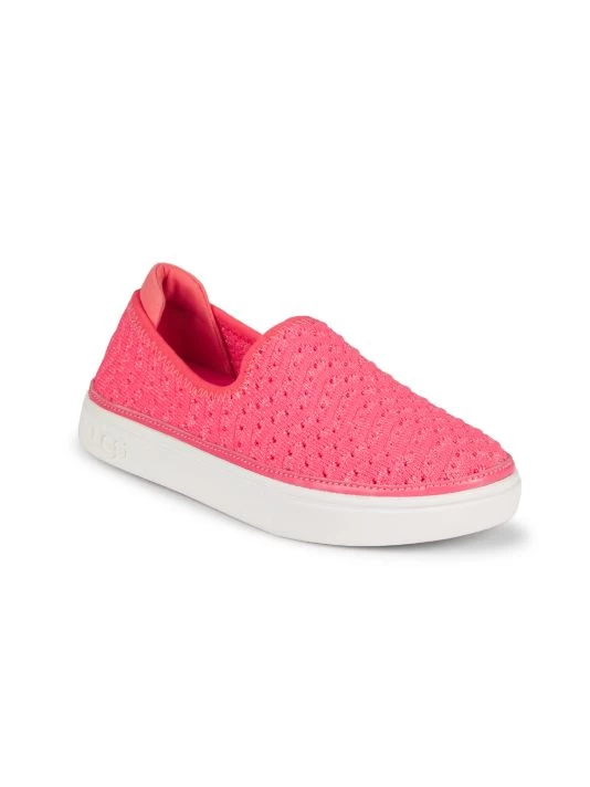 With flexible elastic gore for lace-free convenience, the Caplan Slip-On is the ideal kid shoe for summer. Updated in a breathable knit with shimmering metallic thread, it features a cushioned foam insole and molded rubber outsole for all-day comfort and grip. Finished with recycled antimicrobial lining to keep little feet fresh, it pairs with warm-weather favorites from shorts to bathing suits and beyond.