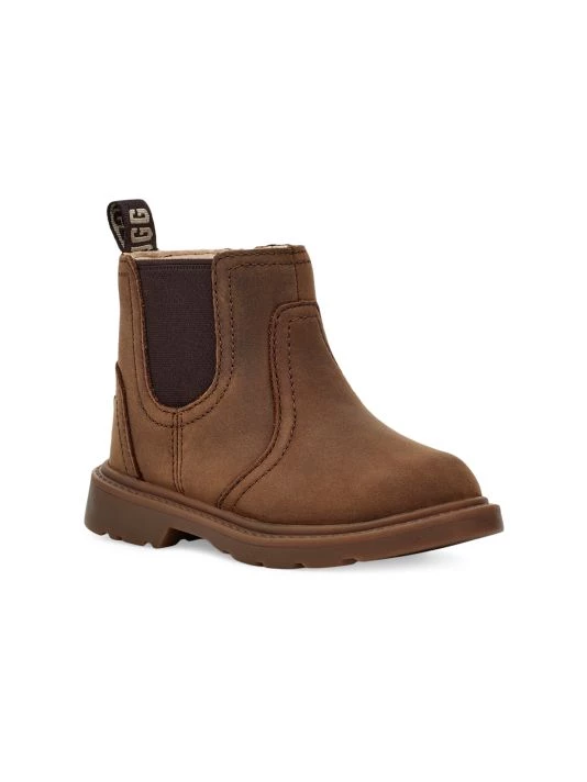 Modeled after the adult style, UGG’s durable Chelsea boots feature sealed seams, traction-enhanced soles, and a waterproof leather upper.
