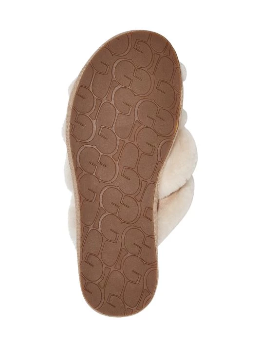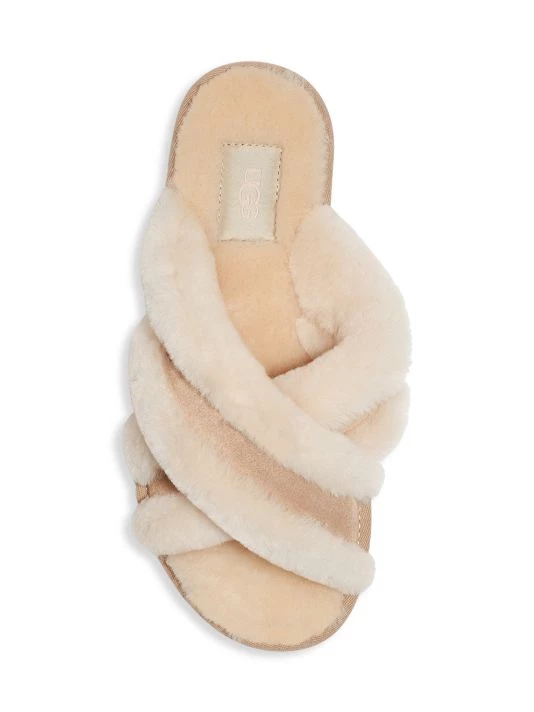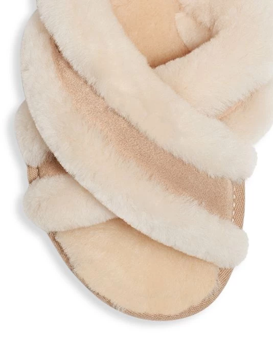 Lined with world-renowned sheepskin, these reimagined slippers feature fluffy cross-straps with rich suede overlays and molded rubber soles for easy indoor-outdoor wear.