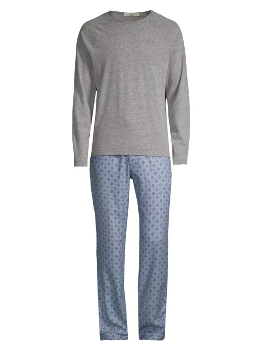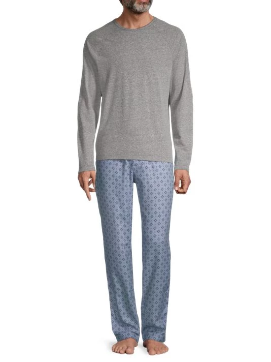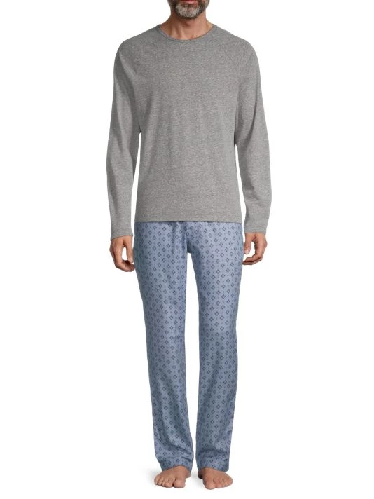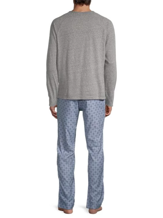 This loungewear set features a long-sleeves shirt and drawstring pants. Machine wash. Imported.