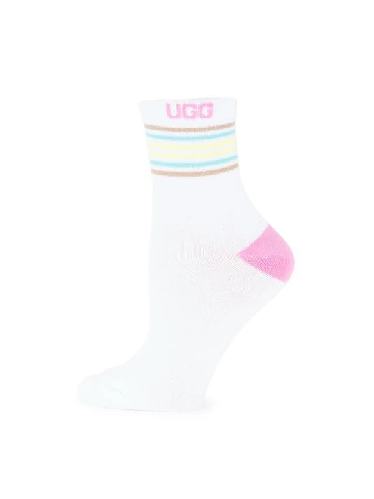 Featuring pastel stripes, UGG’s cozy Teslin quarter-length socks are crafted of a cotton blend.