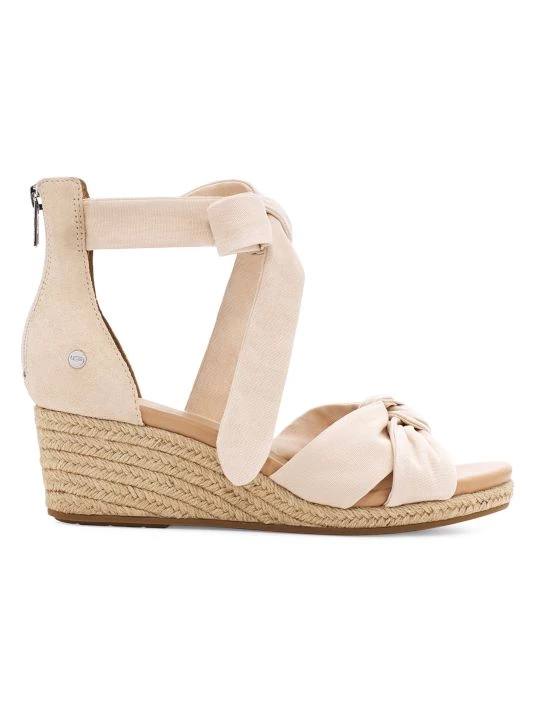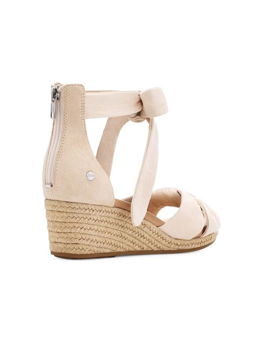 Crafted from rich suede and smooth canvas with a convenient zipper in the back for easy on and off, this leg-lengthening wedge sandal makes a summery statement with its espadrille-inspired jute wrap and elegant ankle bow. Adding a durable rubber outsole for traction, the Yarrow is equal parts fashion and function.