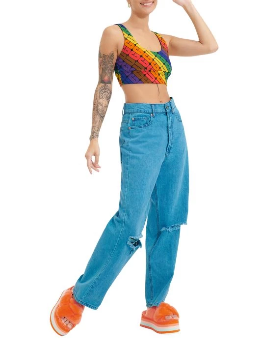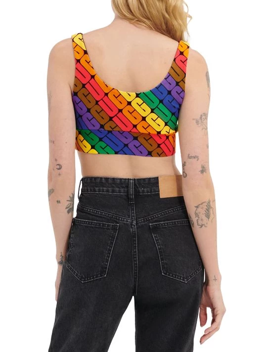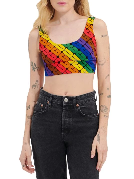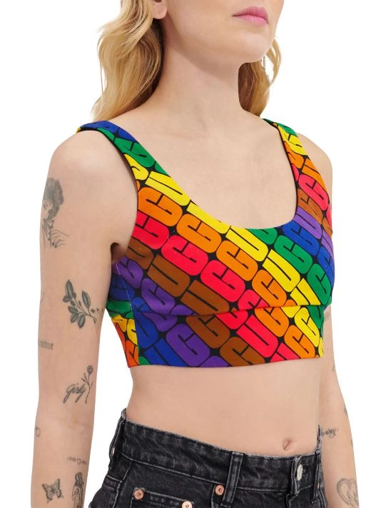 The Zayley stretch-cotton bralette from UGG features a scoopneck and scoopback with a wide, elasticized band. A bright logo lettering print elevates this easy style.